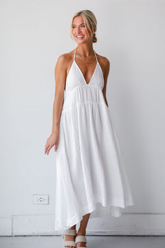 Memorable Entrance White Linen Halter Midi Dress